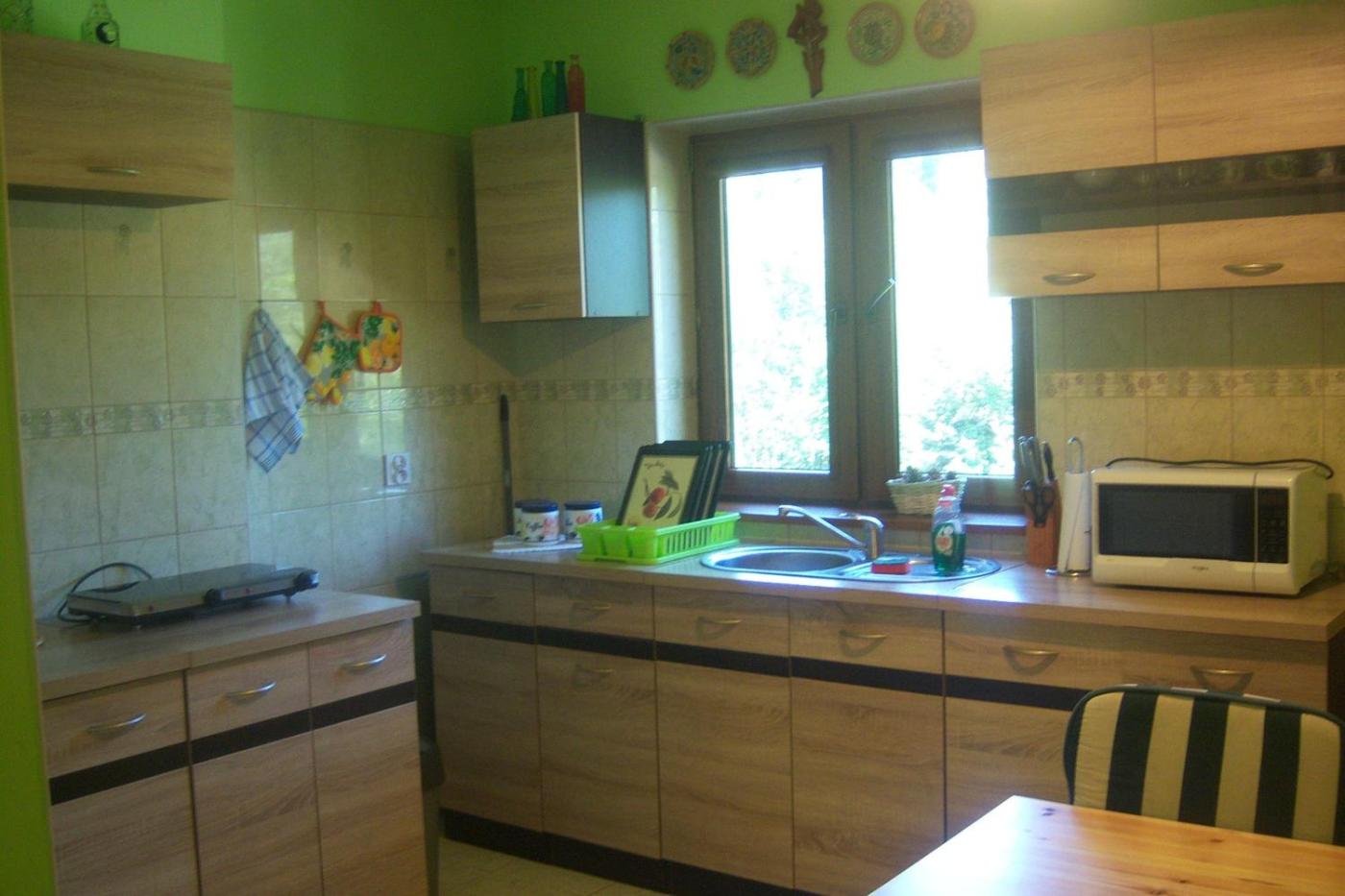 Apartament z 2 sypialniami. This spacious apartment includes 1 living room, 2 separate bedrooms and 1 bathroom with a shower and free toiletries. Guests will find a stovetop, a refrigerator, kitchenware and a microwave in the well-equipped kitchen. The apartment also features a barbecue. The apartment offers a flat-screen TV with streaming services, a washing machine, a private entrance, soundproof walls as well as garden views. The unit has 4 beds. Apartament - 5 osobowy. Powierzchnia pokoju ok.: 75 mkw.