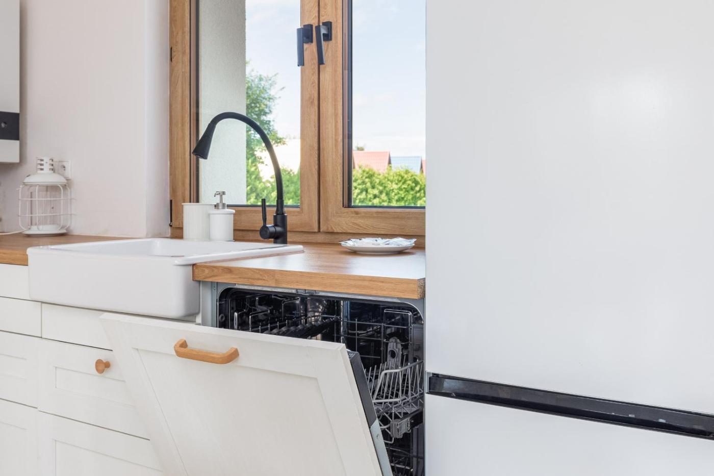 Dom z 2 sypialniami. Guests will find a stovetop, a refrigerator, a dishwasher and kitchenware in the well-fitted kitchen. The holiday home also provides guests with a barbecue. The holiday home provides a flat-screen TV with streaming services, a washing machine, a private entrance, a tea and coffee maker as well as garden views. The unit offers 3 beds. Dom wakacyjny - 6 osobowy. Powierzchnia pokoju ok.: 75 mkw.