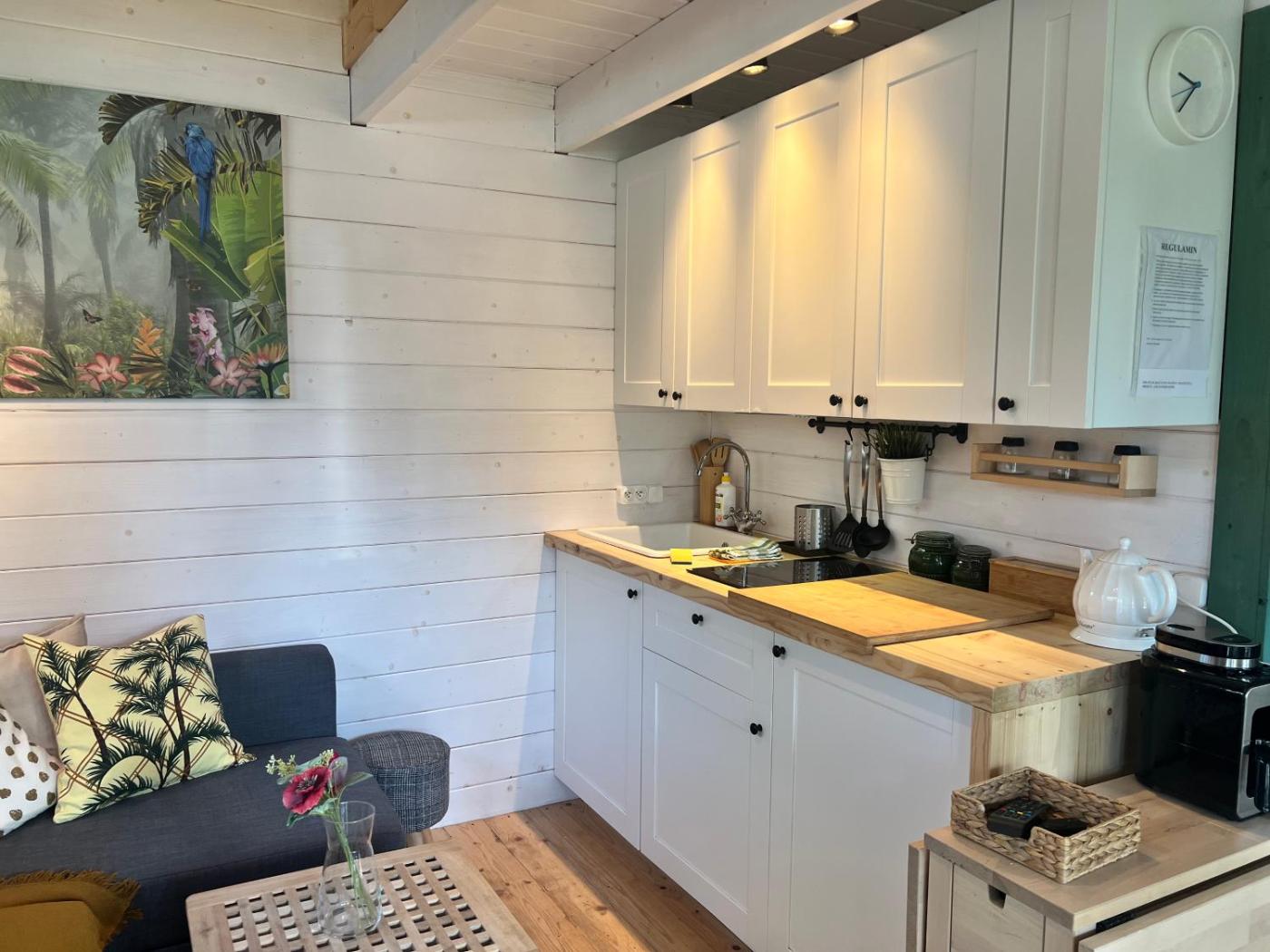 Domek. Boasting a private entrance, this chalet includes 1 living room, 1 separate bedroom and 1 bathroom with a walk-in shower and a bath. In the fully equipped kitchen, guests will find a stovetop, a refrigerator, a dishwasher and kitchenware. Featuring a terrace with garden views, this chalet also offers a tea and coffee maker and a flat-screen TV with streaming services. The unit has 1 bed and 1 futon. Domek - 3 osobowy. Powierzchnia pokoju ok.: 22 mkw.